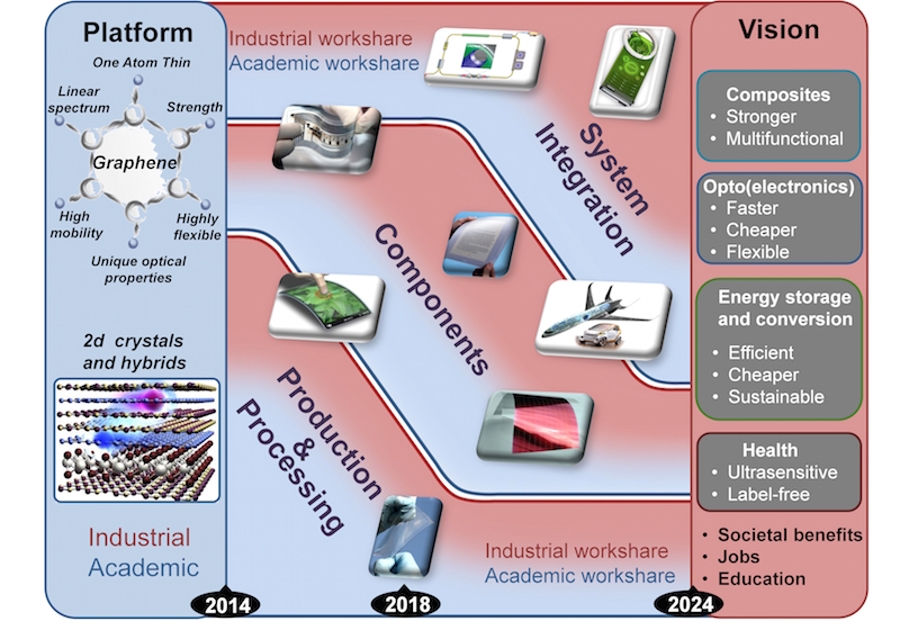 Roadmap timelines predict that, before the end of the 10-year period of the flagship, products will be close to market in the areas of flexible electronics, composites, and energy. We also hope to see advanced prototypes of silicon-integrated photonic devices, sensors, high-speed electronics, and biomedical devices.